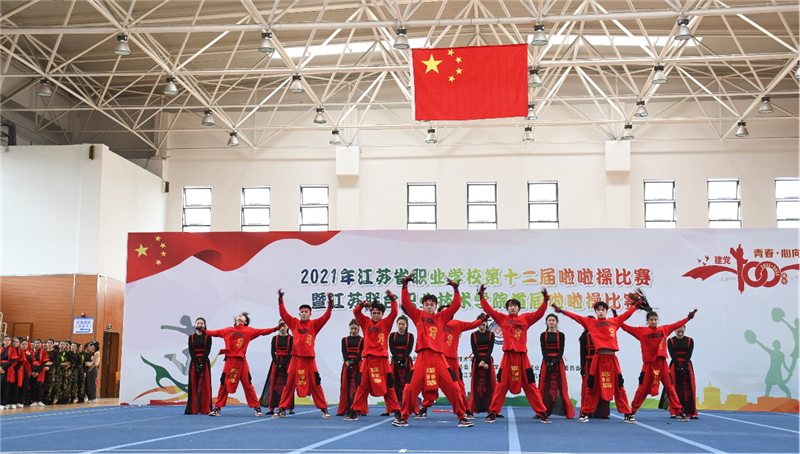 本屆啦啦操比賽既展示了整齊劃一的花球和街舞示范套路,更呈現(xiàn)了“青春心向黨”創(chuàng)意編排,近900名運(yùn)動(dòng)員逐隊(duì)展示、揮灑青春無(wú)畏、逐夢(mèng)揚(yáng)威的汗水。開(kāi)幕式精彩紛呈、亮點(diǎn)頻出,四支冠軍隊(duì)伍的運(yùn)動(dòng)員們?cè)僖淮斡们啻貉笠绲男θ?、整齊劃一的步伐、渾然一體的表演完美呈現(xiàn)了當(dāng)代職業(yè)學(xué)校學(xué)生的風(fēng)貌;近350名運(yùn)動(dòng)員代表同場(chǎng)跳動(dòng),用青春的力量獻(xiàn)禮中國(guó)共產(chǎn)黨篳路藍(lán)縷、砥礪奮進(jìn)的百年歷程。兩天的比賽,節(jié)湊緊湊,安排合理,井然有序,成績(jī)喜人,賽場(chǎng)上的每一位運(yùn)動(dòng)員都積極拼搏,賽場(chǎng)邊加油聲此起彼伏。最終南京市玄武中等專(zhuān)業(yè)學(xué)校獲得中職組團(tuán)體總分第一名,運(yùn)河高等師范學(xué)校(江蘇聯(lián)合職業(yè)技術(shù)學(xué)院運(yùn)河高等師范學(xué)校辦學(xué)點(diǎn))獲得高職組團(tuán)體總分第一名。