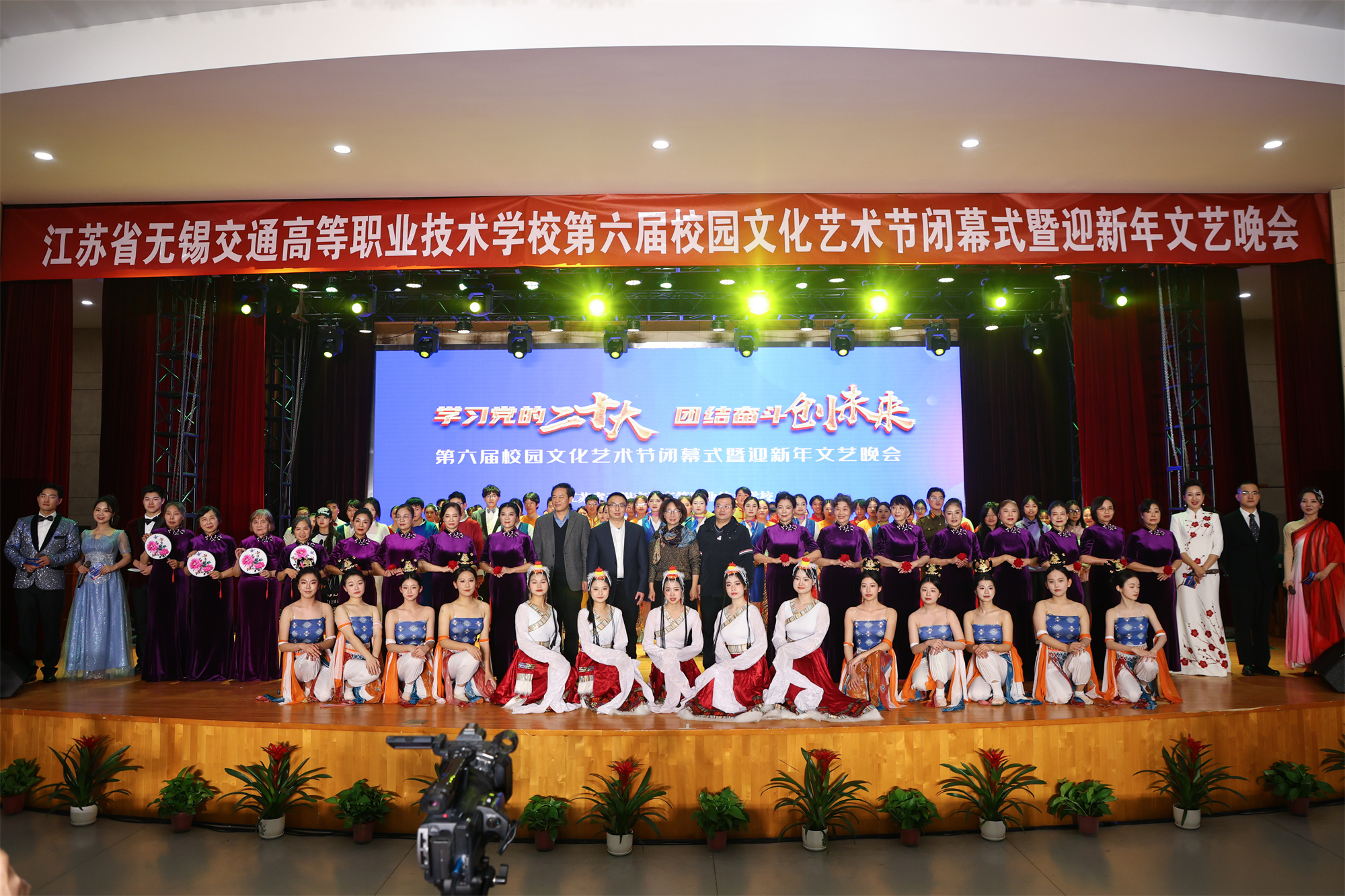 隨著晚會的落幕,第六屆校園文化藝術(shù)節(jié)閉幕式暨迎新年文藝晚會圓滿結(jié)束。校領(lǐng)導(dǎo)和與會嘉賓走上舞臺,親切看望并慰問全體演職人員,祝賀演出成功并與大家合影留念。