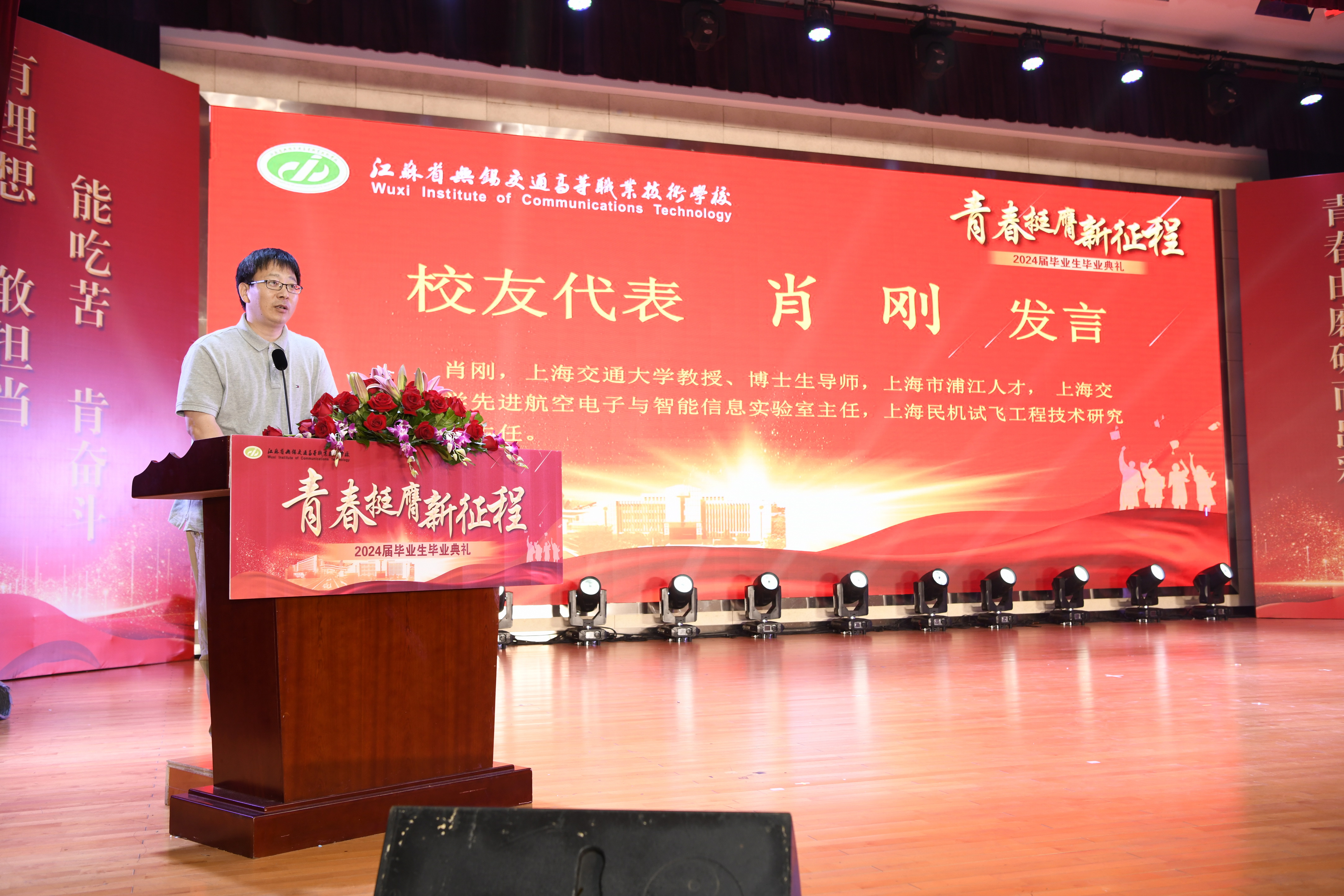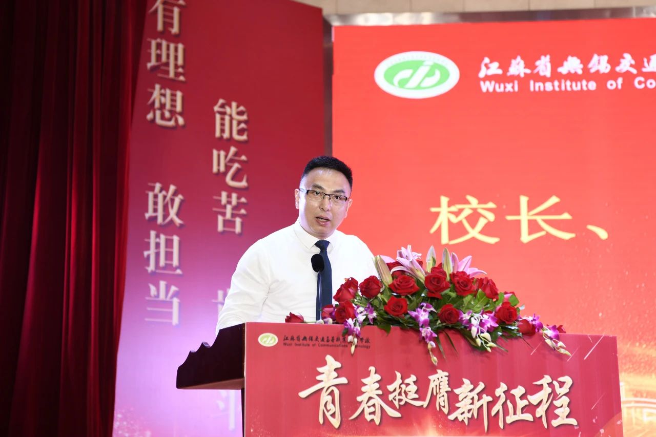 上海交通大學(xué)博士生導(dǎo)師肖剛教授作為校友代表發(fā)言,他勉勵同學(xué)們要有感恩之心、責(zé)任之心、知學(xué)之心,投身交通強(qiáng)國建設(shè)之中,用奮斗的青春書寫人生新篇章。無錫市石油化工設(shè)備有限公司黨支部書記、質(zhì)量安全總監(jiān)柳博作為合作企業(yè)代表,向畢業(yè)生分享了三點成長體會:愛學(xué)習(xí)、愛工作、愛自己和家長,祝愿同學(xué)們在未來的青春歲月里心想事成,大有作為。