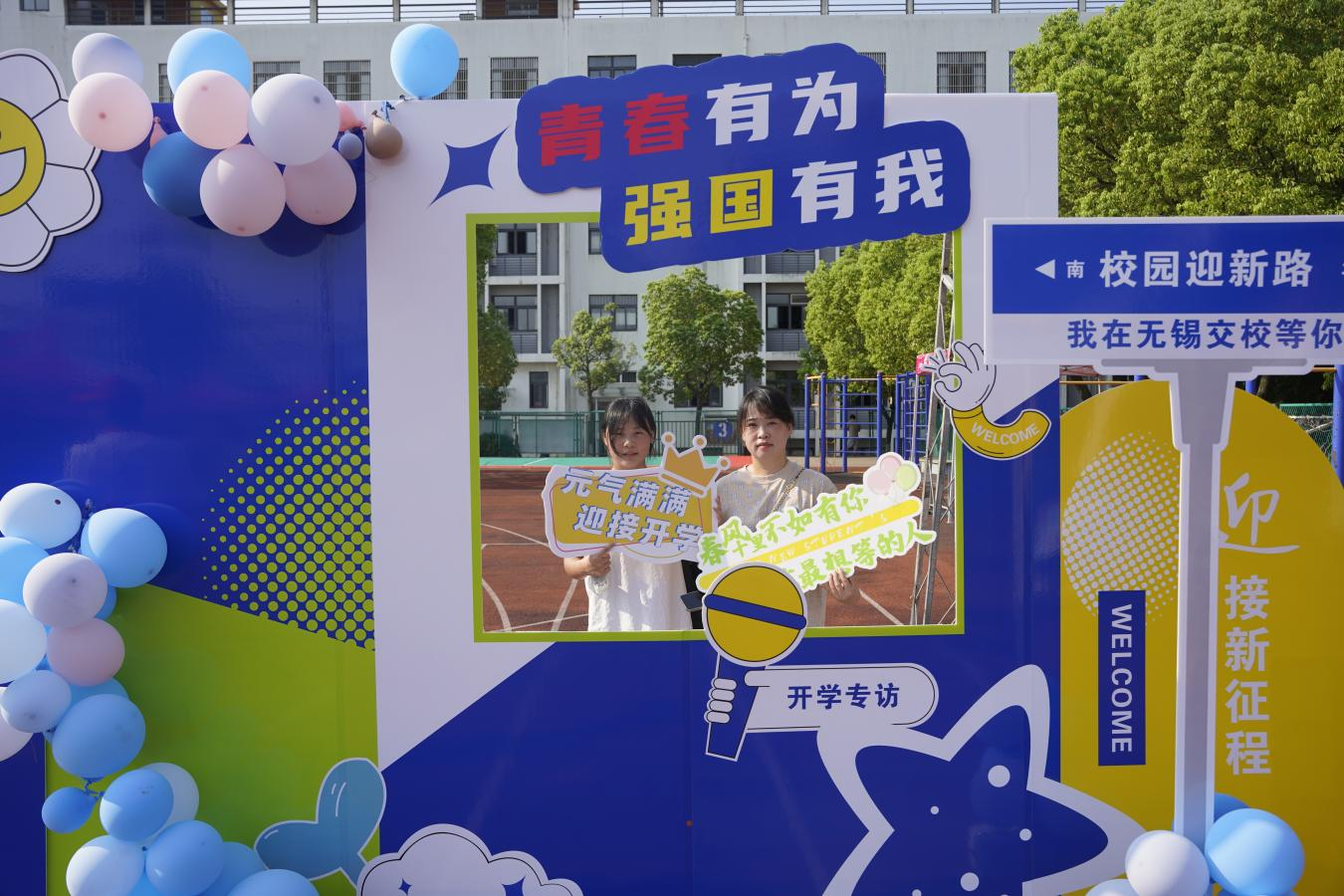 校園內形式多樣的宣傳展板吸引著新生和家長駐足留影,紛紛記錄與交校初次相遇的美好一刻。