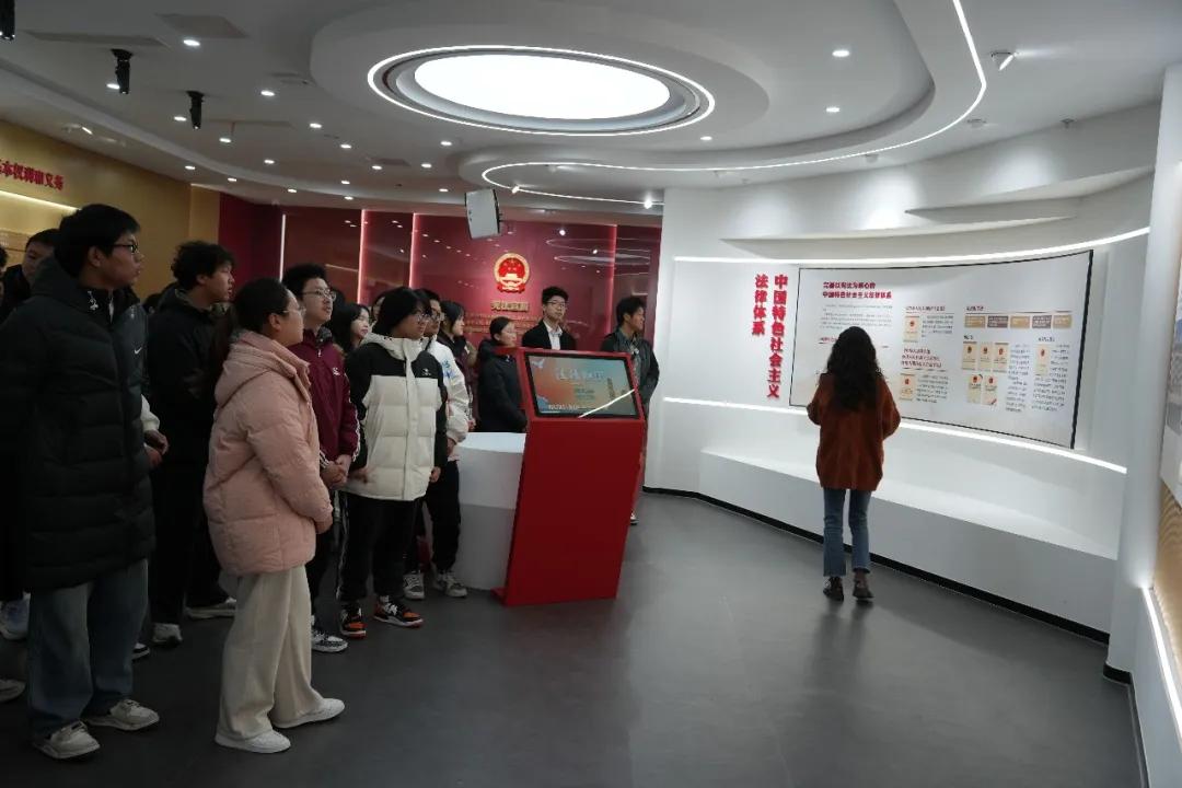 “憲法誕生于何時(shí)?”“憲法如何伴隨我們一生?”在無錫市濱湖區(qū)憲法宣傳教育體驗(yàn)館,交通工程學(xué)院、汽車工程學(xué)院的同學(xué)們?cè)诠庥皥D文與互動(dòng)體驗(yàn)中尋找答案。場(chǎng)館內(nèi),專業(yè)講解員從“五四憲法”的歷史講起,借助生動(dòng)的圖文展板,將憲法的發(fā)展歷程、根本制度、公民權(quán)利義務(wù)等娓娓道來。同學(xué)們?cè)凇皯椃ㄅc生活”展區(qū)駐足,直觀感受憲法如何貫穿從出生到教育、工作及人生全程。互動(dòng)答題區(qū)更是氣氛熱烈,搶答聲此起彼伏——在“學(xué)中練、練中悟”的趣味體驗(yàn)中,憲法知識(shí)不再遙遠(yuǎn),守憲尊法的種子在同學(xué)們心中悄然萌芽。