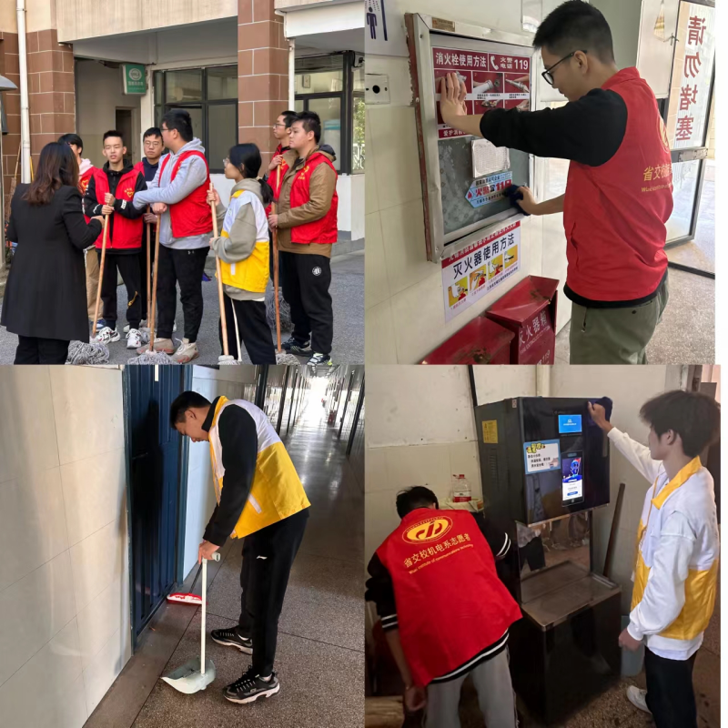 活動內(nèi)容為打掃校園A棟和B棟,同學(xué)們共分為4組,每組10名成員,活動內(nèi)容主要分為掃地、拖地、擦消防栓、飲水機等。