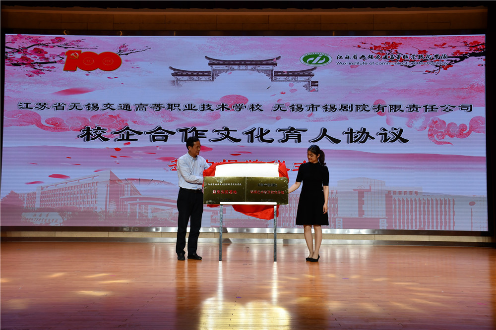 開幕式上,耿興華副校長和無錫市錫劇院徐俊副院長簽訂學(xué)校與無錫市錫劇院開展“錫劇文化進(jìn)校園”校企合作協(xié)議并揭牌。為學(xué)校增掛“錫劇藝術(shù)普及教育基地”、 同時(shí)為戲劇院增掛“美育實(shí)踐基地”。此舉通過打造地方戲劇文化學(xué)習(xí)宣傳普及基地,弘揚(yáng)錫劇藝術(shù),傳承優(yōu)秀地方文化,也進(jìn)一步加強(qiáng)學(xué)校美育工作。