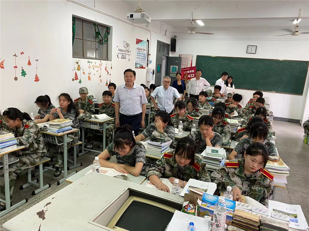 隨后,李書記在學院領導、班主任的陪同下,檢查學院教學樓準備工作,來到新生班級,看望新同學,同學們對李書記的到來表示熱烈歡迎,李書記對同學們表達了誠摯的問候,與同學們進行了親切的交流,詢問了各位同學來到學校后生活、學習以及軍訓等情況,勉勵同學們要樹立遠大理想,錘煉品德修為,練就過硬本領,以嶄新的姿態(tài)迎接新的挑戰(zhàn),追逐最初的夢想,不辜負自己、家長和國家,實現自己的夢想,在軍訓中服從命令,聽從指揮,精誠團結,練出本領,訓出風采,乘風破浪,不斷成長。