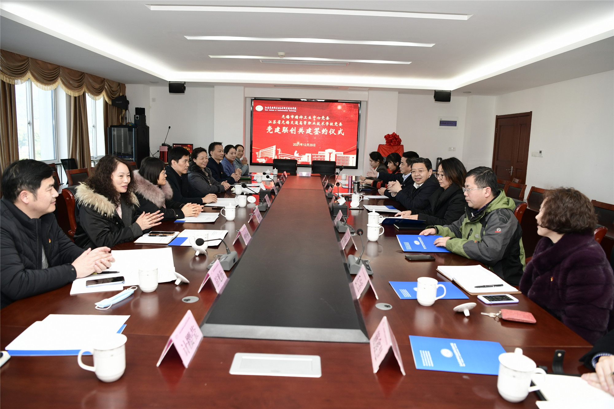 12月29日下午,學(xué)校黨委與無錫市精神衛(wèi)生中心黨委黨建聯(lián)創(chuàng)共建簽約儀式在512會議室舉行。無錫市精神衛(wèi)生中心黨委書記周軍偉,黨委副書記、院長薛美華,黨委委員、副院長甄莉麗和學(xué)校黨委書記、校長李虎,黨委副書記、五級職員朱雨蘭出席活動,雙方相關(guān)職能部門負(fù)責(zé)人等10余人參加簽約儀式。儀式由學(xué)校黨委委員、副校長倪依純主持。