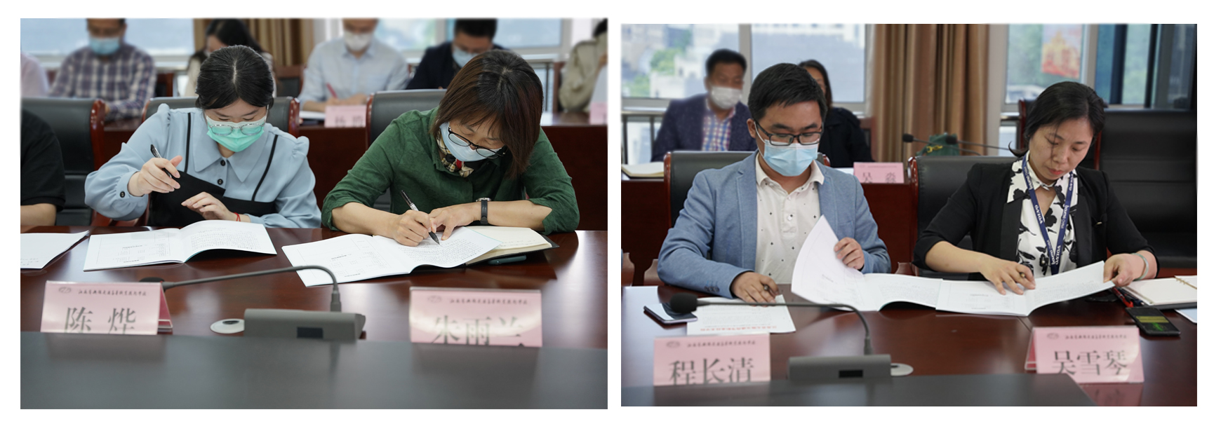 教務(wù)處(教師發(fā)展中心)馮美仙處長宣讀了青藍(lán)工程師徒結(jié)對名單。師傅由各專業(yè)有經(jīng)驗的優(yōu)秀教師擔(dān)任,指導(dǎo)和幫助新教師在教學(xué)上快速成長。師徒雙方簽訂了“青藍(lán)工程”結(jié)對協(xié)議,師徒代表俞浩和陳燁兩位老師作為代表發(fā)言,表達(dá)了師徒攜手同心、共同學(xué)習(xí)、共同成長、不斷追求進(jìn)步的決心。