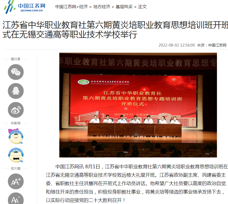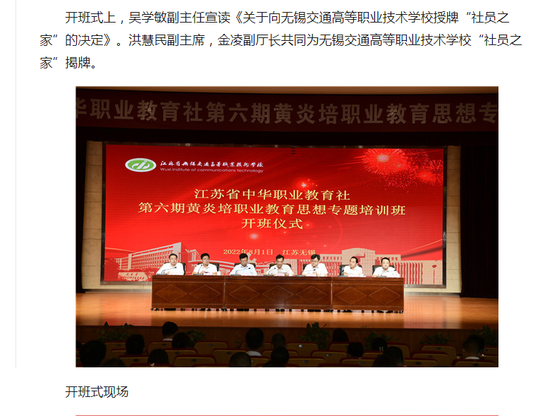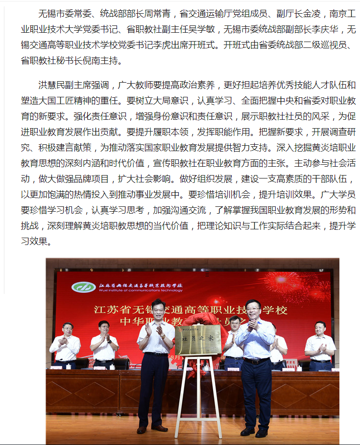 江蘇省中華職業(yè)教育社第六期黃炎培職業(yè)教育思想培訓班開班式在無錫交通高等職業(yè)技術學校舉行
