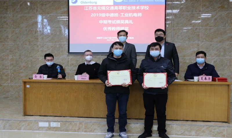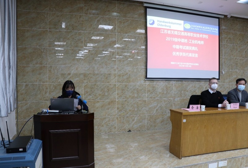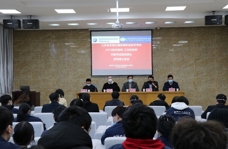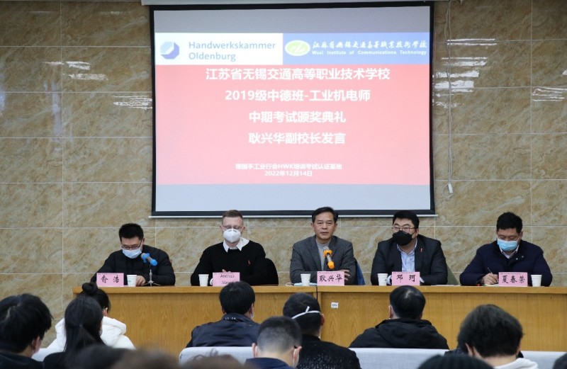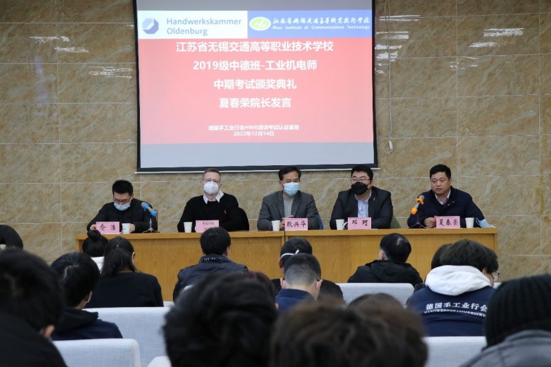 為進(jìn)一步開展好德國手工業(yè)行會工業(yè)機(jī)電師培養(yǎng)項(xiàng)目,不斷總結(jié)經(jīng)驗(yàn)和成果,激勵同學(xué)們將更多的精力投入到項(xiàng)目學(xué)習(xí)中,機(jī)電工程學(xué)院與德國手工業(yè)行會中國項(xiàng)目辦于12月14日下午,在錫澄校區(qū)舉行了2019級工業(yè)機(jī)電師中期考試頒獎典禮。學(xué)校黨委委員、副校長耿興華,德國手工業(yè)行會中國項(xiàng)目辦總負(fù)責(zé)人鄧珂博士、機(jī)電工程學(xué)院院長夏春榮、德國手工業(yè)行會教官Andreas Meyer、學(xué)院優(yōu)秀教師、家長代表、全體2019級中德班學(xué)生等參加了本次頒獎典禮,會議由機(jī)電工程學(xué)院副院長俞浩主持。