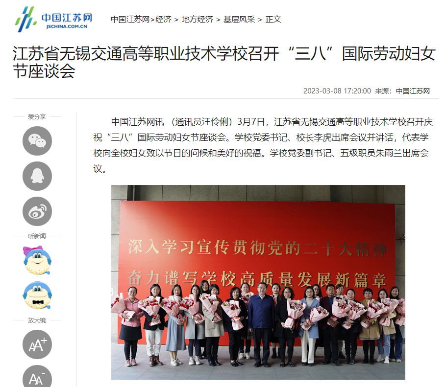 江蘇省無(wú)錫交通高等職業(yè)技術(shù)學(xué)校召開(kāi)“三八”國(guó)際勞動(dòng)?jì)D女節(jié)座談會(huì)_中國(guó)江蘇網(wǎng) (jschina.com.cn)
