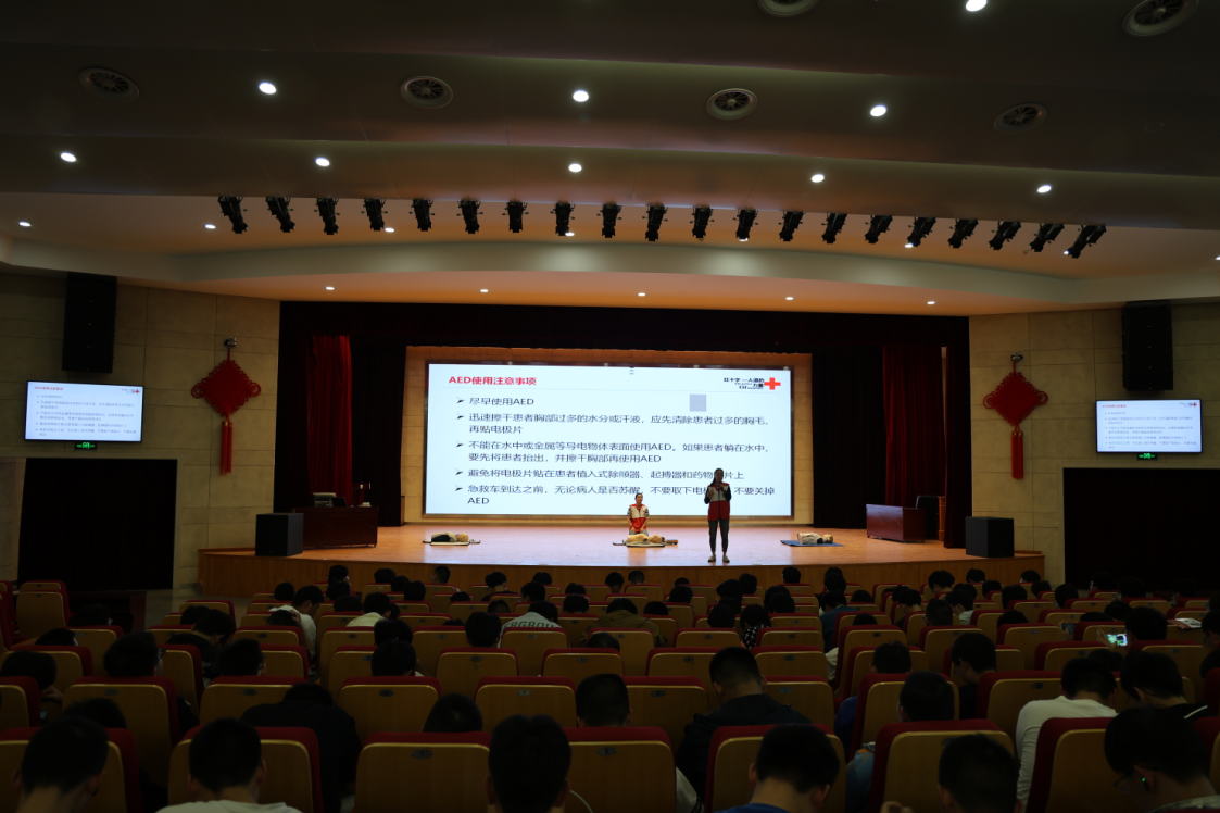 活動(dòng)初始,紅十字會(huì)培訓(xùn)老師向師生們介紹了紅十字會(huì)的起源發(fā)展、工作職責(zé)、標(biāo)志及“人道、博愛(ài)、奉獻(xiàn)”的紅十字會(huì)精神,使同學(xué)們對(duì)紅十字會(huì)有了初步了解。隨后,紅十字會(huì)培訓(xùn)老師結(jié)合理論知識(shí)和實(shí)際救護(hù)技巧對(duì)生活中遇到突發(fā)狀況急救、徒手心肺復(fù)蘇、溺水緊急救護(hù)等內(nèi)容作了詳細(xì)講解。為了使師生們更加深入了解各項(xiàng)救護(hù)技巧、掌握心肺復(fù)蘇要領(lǐng)、培訓(xùn)老師和師生們?cè)诂F(xiàn)場(chǎng)展開(kāi)了深入互動(dòng),對(duì)心肺復(fù)蘇進(jìn)行了實(shí)操演練、手把手向同學(xué)們傳授了急救手法和注意事項(xiàng)。