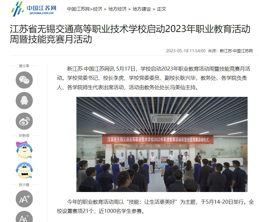 中江網(wǎng):江蘇省無(wú)錫交通高等職業(yè)技術(shù)學(xué)校啟動(dòng)2023年職業(yè)教育活動(dòng)周暨技能競(jìng)賽月活動(dòng)