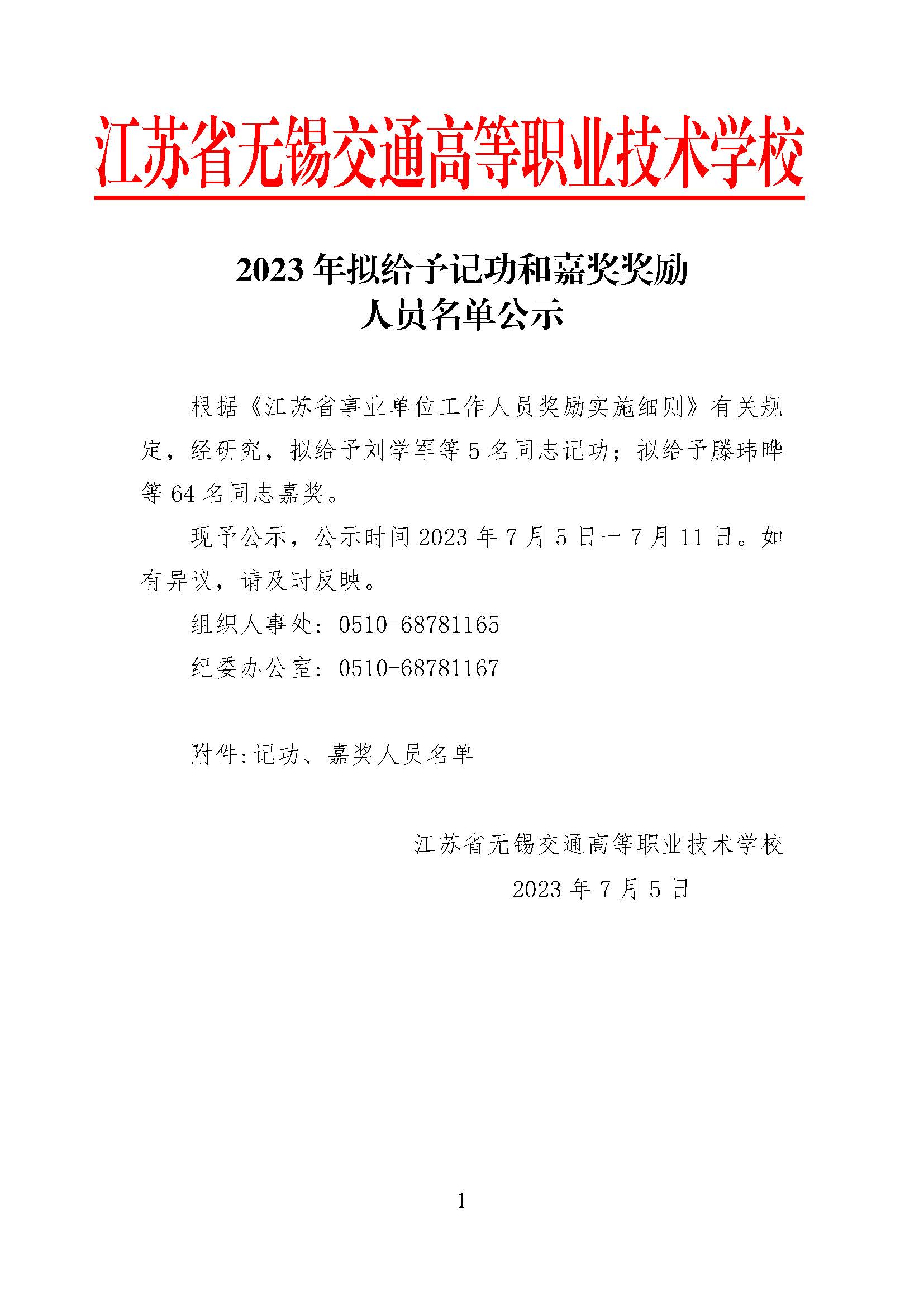 2023年擬給予記功和嘉獎(jiǎng)獎(jiǎng)勵(lì)人員名單公示