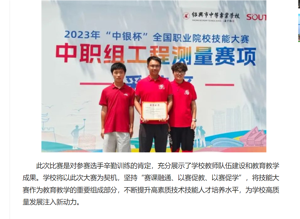 江蘇交通:無錫交校教師獲全國職業(yè)院校技能大賽工程測量賽項一等獎