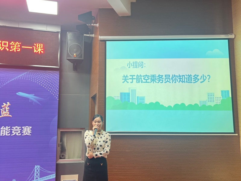 吳依霖老師就空中乘務(wù)(航空服務(wù))專業(yè)內(nèi)容做具體講解,包括空中乘務(wù)(航空服務(wù))專業(yè)基本介紹、專業(yè)課介紹、職業(yè)方向及要求和學(xué)生在校行為規(guī)范等四個(gè)方面,讓學(xué)生對(duì)空中乘務(wù)員這個(gè)職位有了更深入的了解,她要求大家平時(shí)學(xué)習(xí)生活中也要用空中乘務(wù)員的標(biāo)準(zhǔn)來規(guī)范自己,成為一個(gè)優(yōu)秀的空中乘務(wù)(航空服務(wù))專業(yè)學(xué)生。