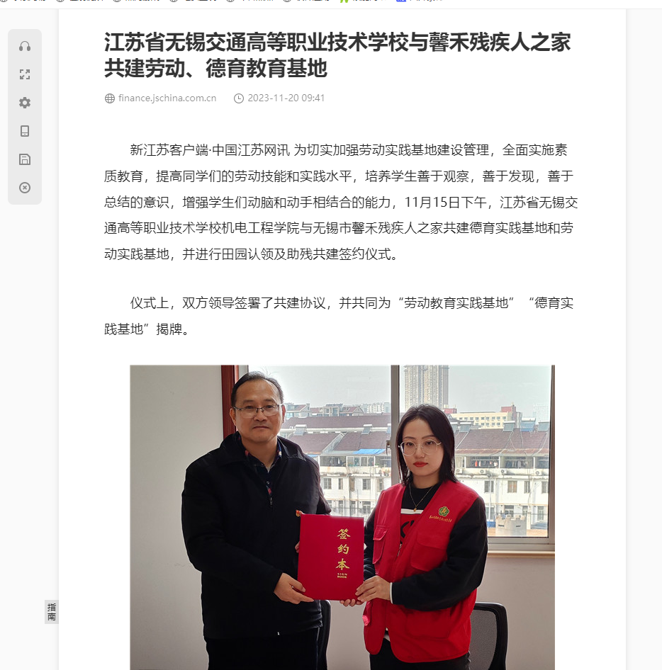 中江網(wǎng):江蘇省無錫交通高等職業(yè)技術(shù)學(xué)校與馨禾殘疾人之家共建勞動(dòng)、德育教育基地