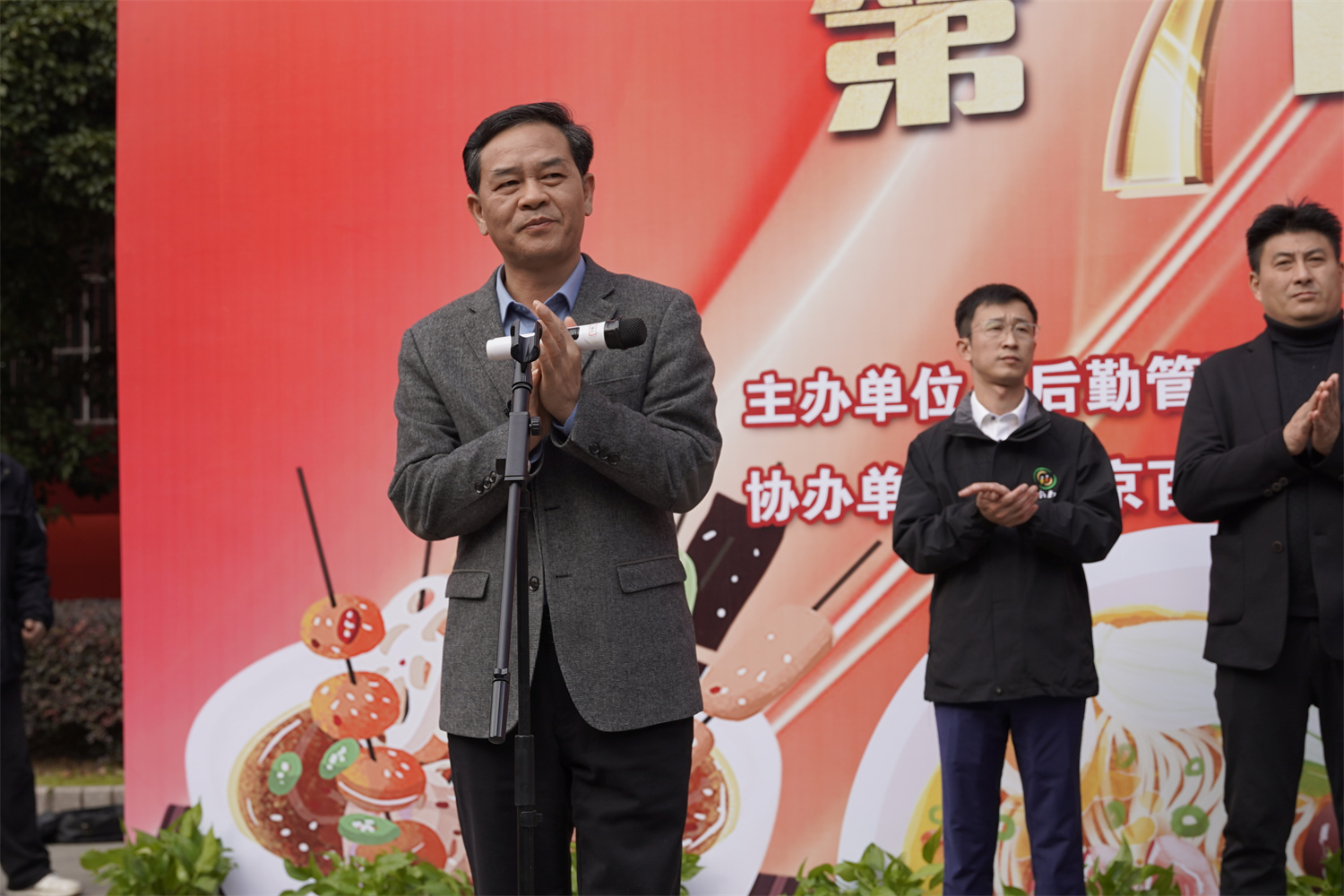 學(xué)校黨委委員、副校長耿興華、范次猛出席開幕式。無錫市市場管理監(jiān)督局榮巷分局局長陳樺,蘇州工業(yè)園區(qū)同發(fā)餐飲管理服務(wù)有限公司副總經(jīng)理尹宜庭,南京輝玲緣餐飲公司辦公室主任魏彬,北京百靈鳥餐飲管理有限公司副總經(jīng)理馬建棟,世紀(jì)華聯(lián)超市(江蘇)有限公司區(qū)域經(jīng)理楊泗慶,長興虹盛食品有限公司區(qū)域經(jīng)理劉炯瑋參加了開幕式。