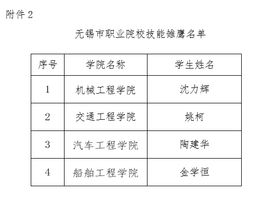 2.無(wú)錫市職業(yè)院校技能雛鷹名單