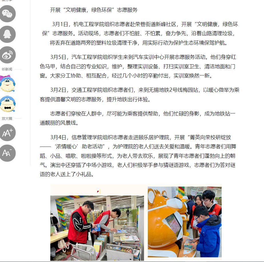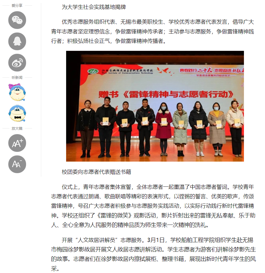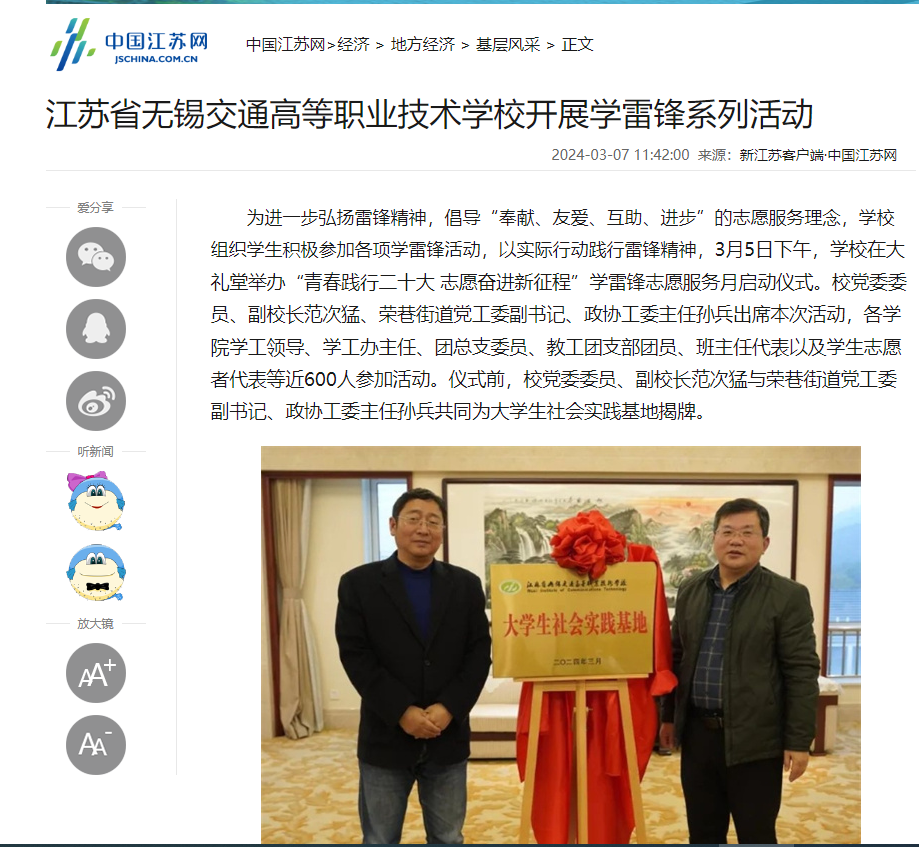 中江網(wǎng):江蘇省無錫交通高等職業(yè)技術(shù)學(xué)校開展學(xué)雷鋒系列活動