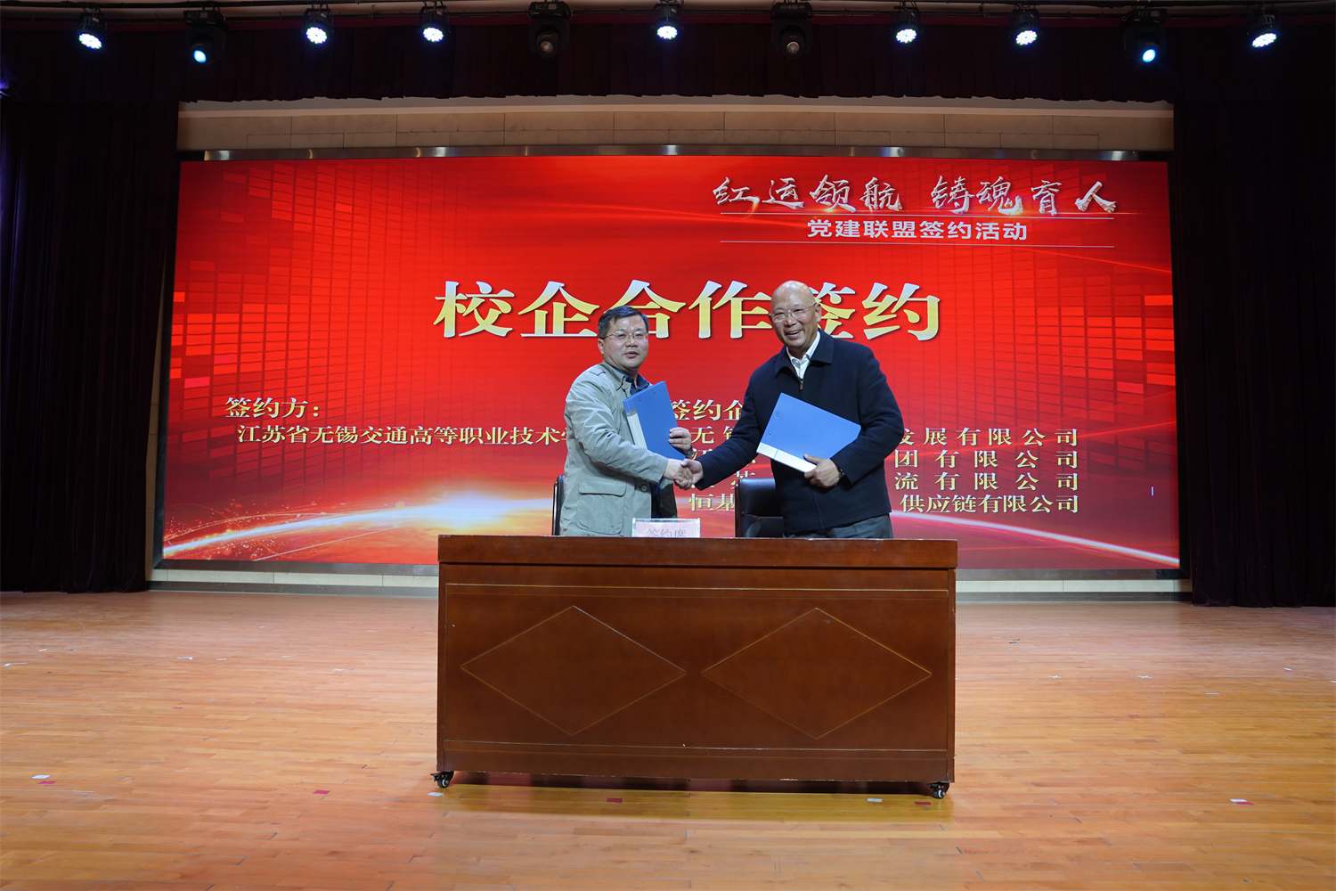 為強化黨建引領,加強校企合作,共建“紅運領航 鑄魂育人”黨建共建品牌,3月28日,物流管理學院黨總支與無錫物流與采購聯(lián)合會黨支部在學校大禮堂舉行了“紅運領航 鑄魂育人”黨建聯(lián)盟簽約儀式。無錫市工信局無線電處處長、無錫物流與采購聯(lián)合會高級顧問葉軍,學校校長、黨委書記李進,校黨委委員、副校長范次猛,無錫物流與采購聯(lián)合會常務副會長、無錫禾健物流發(fā)展有限公司總經(jīng)理馬立雨,無錫物流與采購聯(lián)合會黨支部書記、江蘇太運集團有限公司董事長包一林,江蘇環(huán)中物流有限公司總經(jīng)理張煜和協(xié)會下屬二十余家會員企業(yè)代表出席簽約活動。簽約儀式由物流管理學院院長盛姣主持。