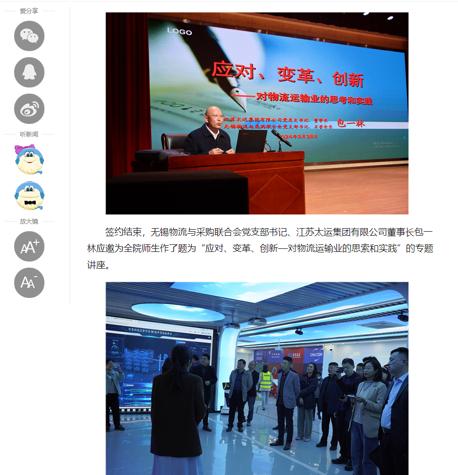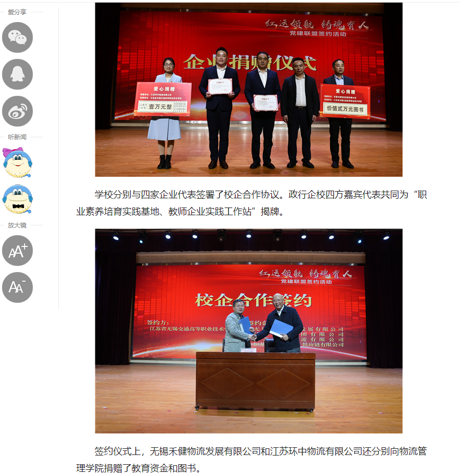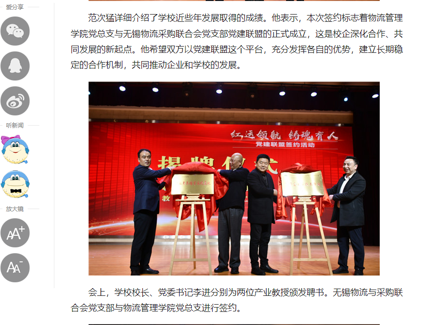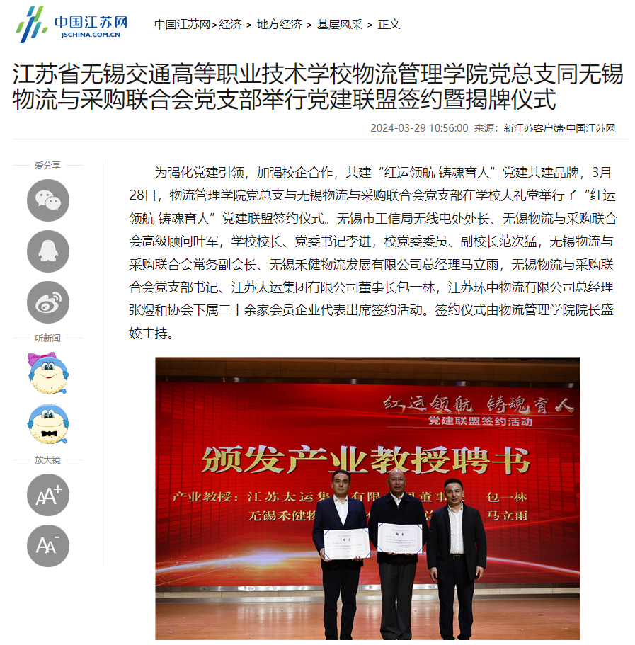 中江網(wǎng):江蘇省無(wú)錫交通高等職業(yè)技術(shù)學(xué)校物流管理學(xué)院黨總支同無(wú)錫物流與采購(gòu)聯(lián)合會(huì)黨支部舉行黨建聯(lián)盟簽約暨揭牌儀式