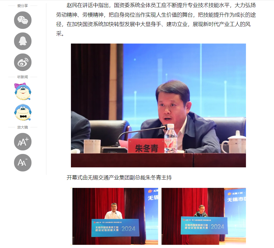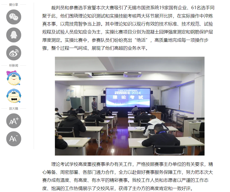 中江網(wǎng):無錫市國資系統(tǒng)工程建設(shè)試驗(yàn)技能大賽在江蘇省無錫交通高等職業(yè)技術(shù)學(xué)校開賽