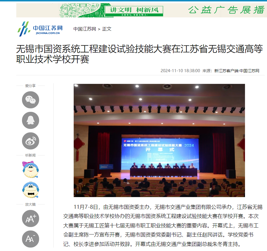 新江蘇:無錫市國資系統(tǒng)工程建設(shè)試驗(yàn)技能大賽在江蘇省無錫交通高等職業(yè)技術(shù)學(xué)校開賽
