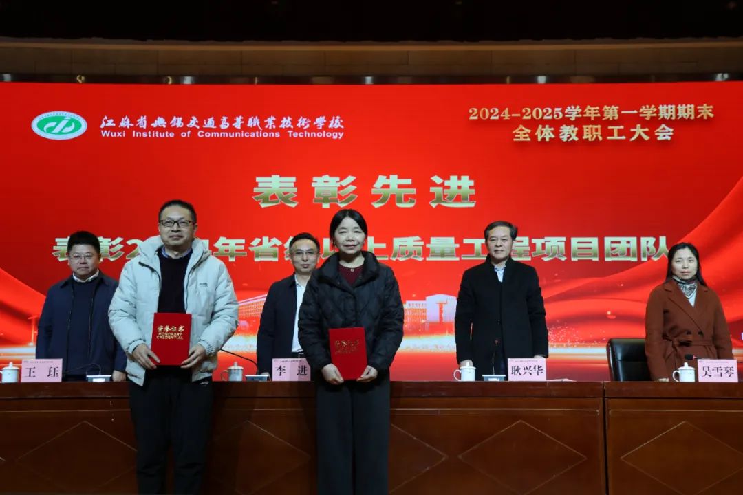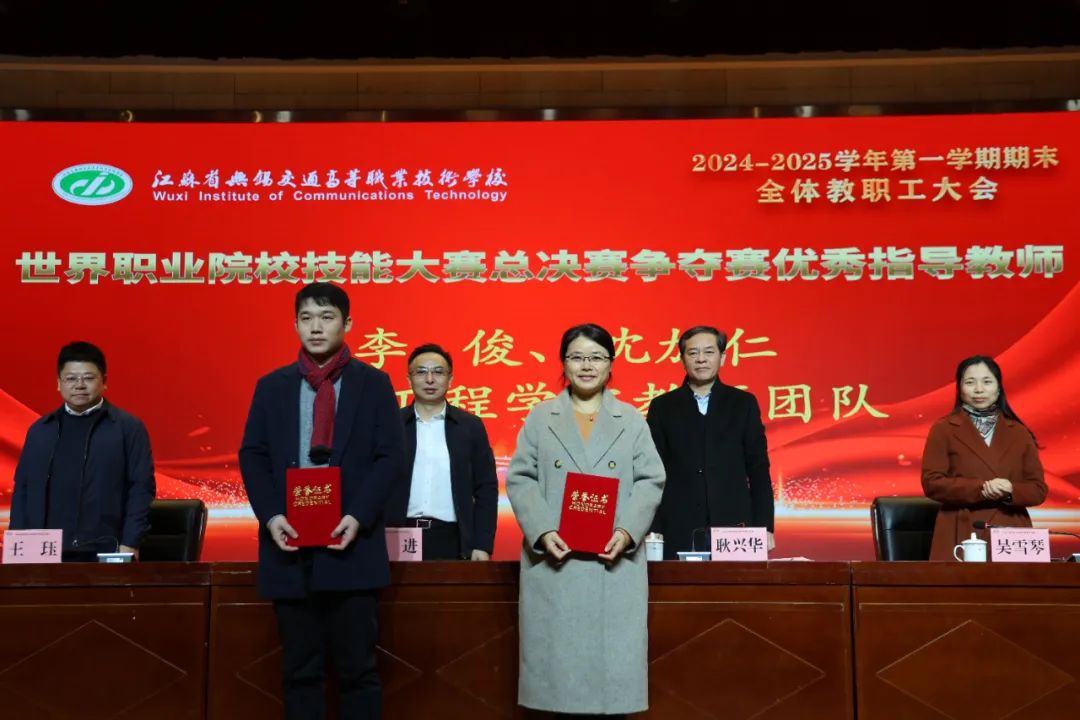 學(xué)校黨委委員、副校長吳雪琴宣讀2024年學(xué)校“十件大事”。全面回顧了學(xué)校在過去一年的奮斗足跡。會上還表彰了省級以上榮譽獲獎教師和團隊。校領(lǐng)導(dǎo)為他們頒發(fā)獲獎證書和銅牌。來自處室、學(xué)院的優(yōu)秀教職工代表作交流發(fā)言,分享了在專業(yè)建設(shè)、技能競賽以及工作中的優(yōu)秀經(jīng)驗和做法。