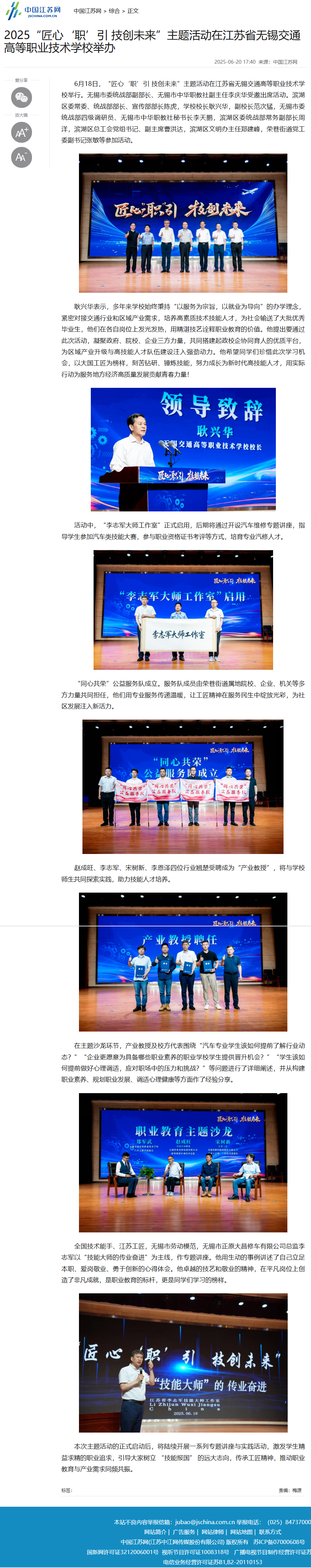 中江網(wǎng):2025“匠心‘職’引 技創(chuàng)未來”主題活動在江蘇省無錫交通高等職業(yè)技術(shù)學(xué)校舉辦