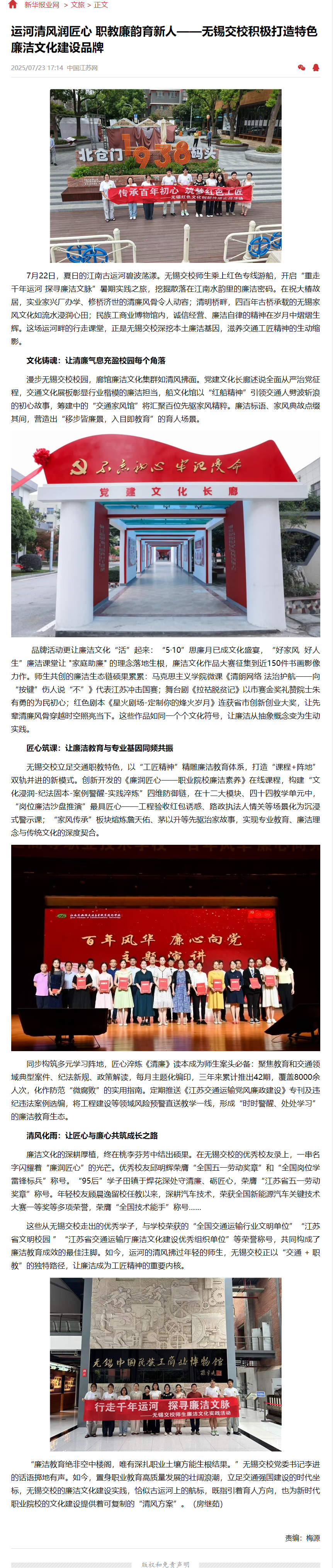 運(yùn)河清風(fēng)潤(rùn)匠心 職教廉韻育新人——無錫交校積極打造特色廉潔文化建設(shè)品牌 (xhby.net)
