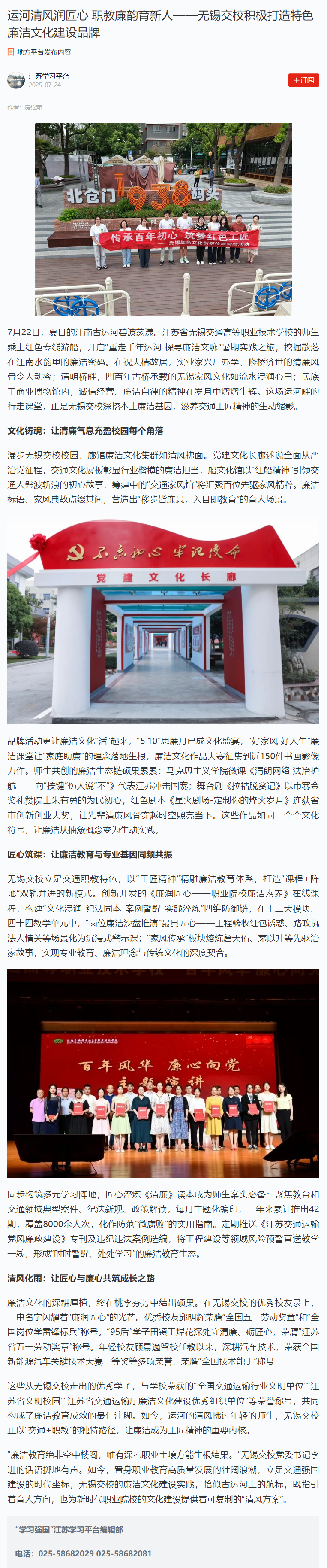 學習強國:運河清風潤匠心 職教廉韻育新人——無錫交校積極打造特色廉潔文化建設品牌