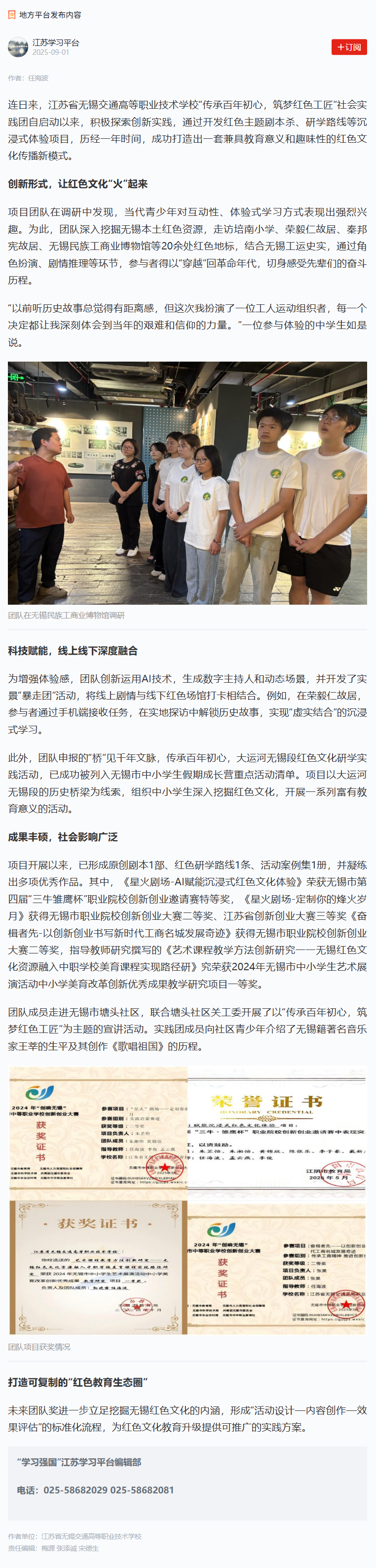 學習強國:傳承百年初心 無錫交校學子讓紅色文化“火”起來