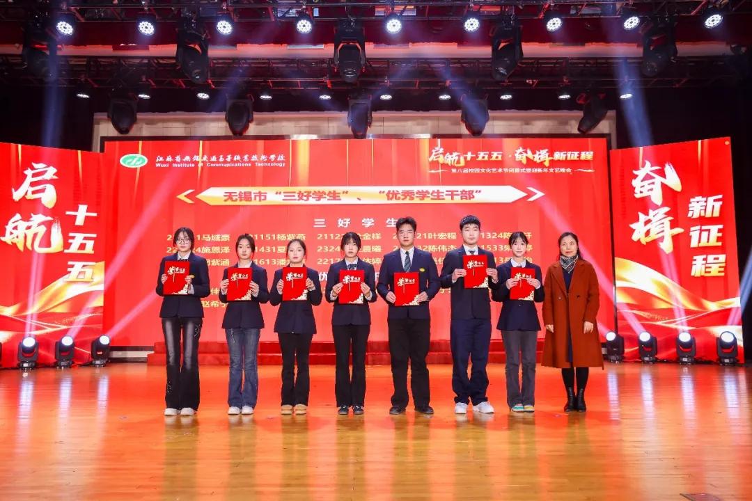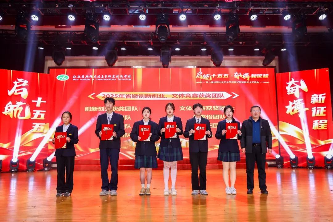 晚會首先舉行頒獎儀式。校領導先后為2025年度在市級以上班主任能力大賽、省級以上創(chuàng)新創(chuàng)業(yè)大賽與職業(yè)技能競賽、文體藝術賽事中榮獲佳績的師生代表,以及國家獎學金、校長獎學金、市級以上“三好學生”“優(yōu)秀學生干部”獲得者頒獎。一年來,學校堅持立德樹人、以文化人,師生在各級各類平臺屢獲殊榮,展現(xiàn)了扎實的專業(yè)功底、出色的綜合素養(yǎng)與昂揚的精神風貌。