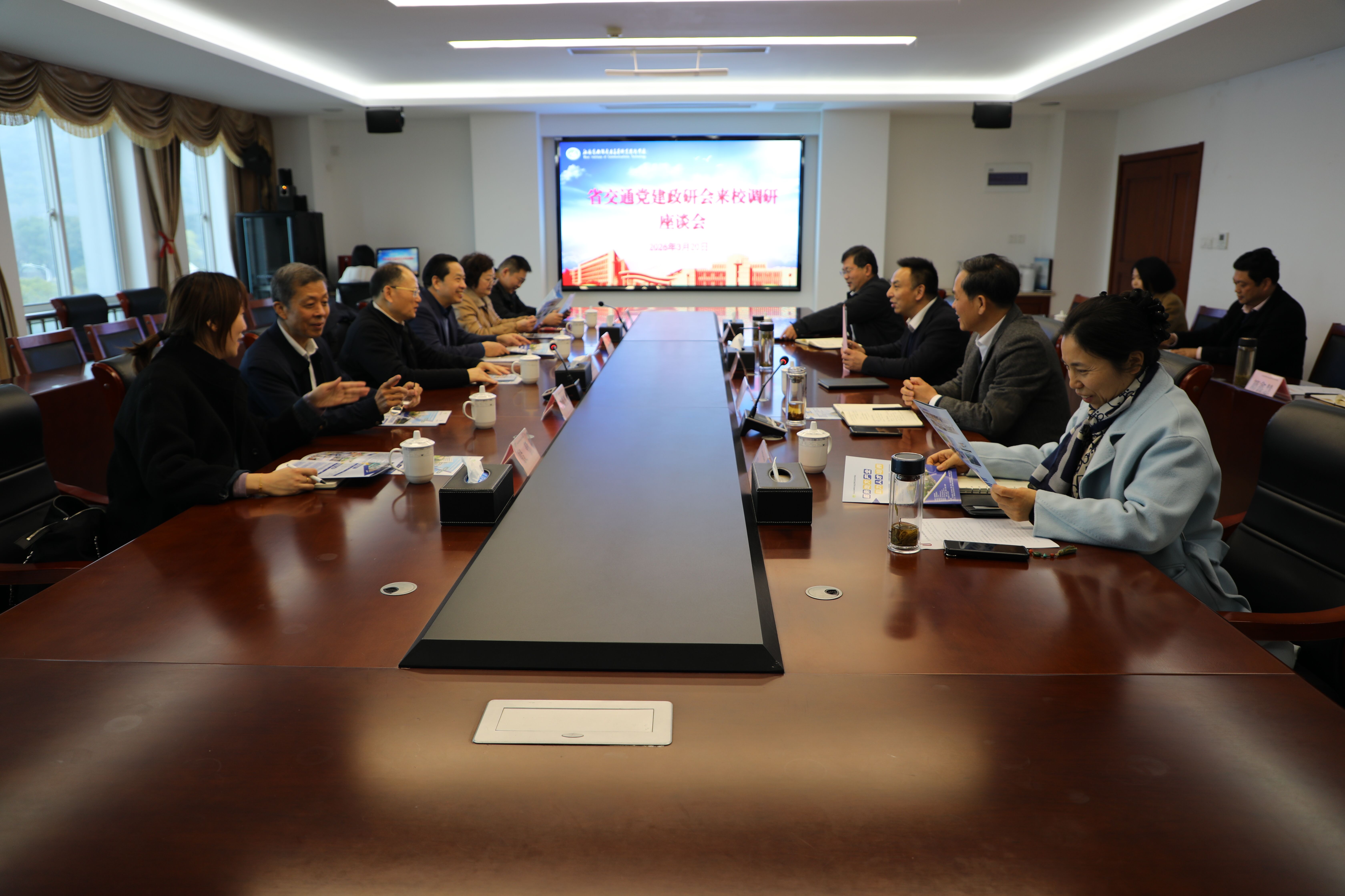 3月20日下午,省交通黨建政研會(huì)會(huì)長(zhǎng)汪祝君等一行蒞臨學(xué)校調(diào)研考察,全體校領(lǐng)導(dǎo)出席調(diào)研匯報(bào)會(huì),黨政辦公室、組織人事處、教務(wù)處、交通工程學(xué)院、繼續(xù)教育學(xué)院等相關(guān)部門負(fù)責(zé)人參加了會(huì)議。