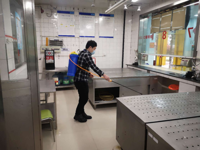 為進一步做好新型冠狀病毒肺炎疫情防控工作,切實保障全校師生員工的身體健康和生命安全,確保2020年春季開學(xué)工作的順利進行,在校黨委書記李虎的帶領(lǐng)下,學(xué)生工作處、工會、后勤管理處等部門負責(zé)人于2020414日對食堂超市進行開學(xué)前準(zhǔn)備工作的全面檢查。校領(lǐng)導(dǎo)重點對學(xué)校食堂就餐場所、操作間環(huán)境衛(wèi)生、設(shè)施設(shè)備消毒、原料儲存、餐用具消毒等準(zhǔn)備情況進行檢查。最后,校黨委書記李虎對學(xué)校食堂超市提出四點要求:一要切實做好從業(yè)人員健康、個人防護和培訓(xùn)宣傳等工作;二要把餐廳、操作間環(huán)境、設(shè)施設(shè)備、原料索證索票及儲存、餐用具消毒等關(guān)鍵環(huán)節(jié)檢查落實工作;三要建立健全食品安全各項規(guī)章制度和各種記錄;四要嚴(yán)格管控供餐配送。配送食品要有包裝或使用密閉容器盛放,配送食品前,要對配送工具、周轉(zhuǎn)箱、容器等設(shè)備進行全面清潔消毒,全力保障學(xué)校廣大師生舌尖上的安全。