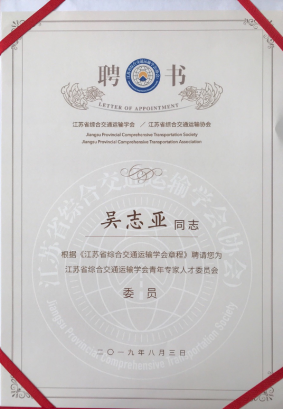 江蘇省綜合交通運(yùn)輸學(xué)會(huì)青年專(zhuān)家人才委員會(huì)委員