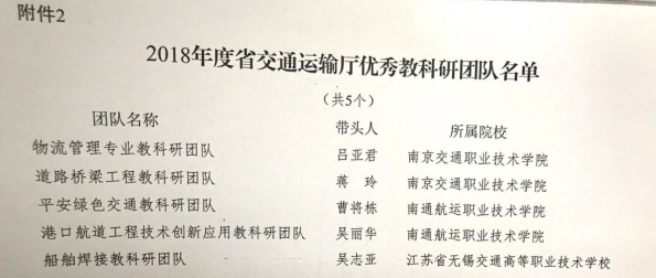 江蘇省交通運(yùn)輸廳優(yōu)秀教科研團(tuán)隊(duì)帶頭人