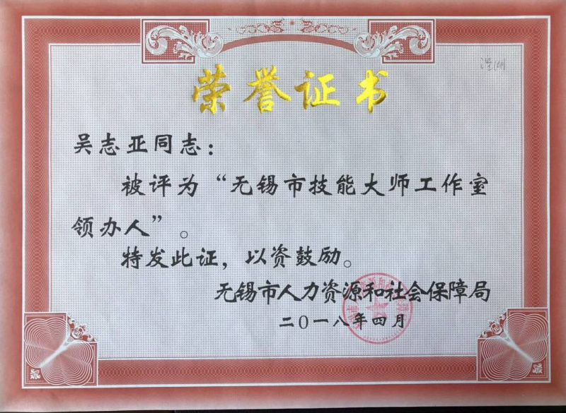 無(wú)錫市技能大師工作室領(lǐng)辦人