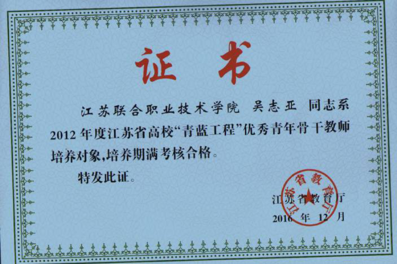 江蘇省高校“青藍(lán)工程”優(yōu)秀青年骨干教師