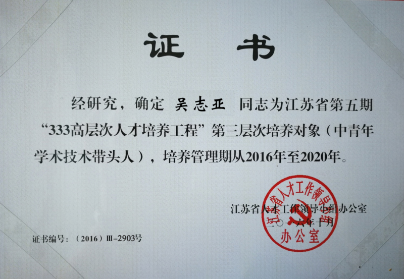 江蘇省“333高層次人才培養(yǎng)工程”第三層次培養(yǎng)對(duì)象