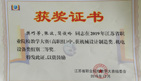 江蘇省職業(yè)院校教學(xué)大賽(高職組)二等獎