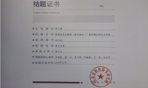結業(yè)證書-制造類專業(yè)課程“做學教合一”教學模式研究與實踐