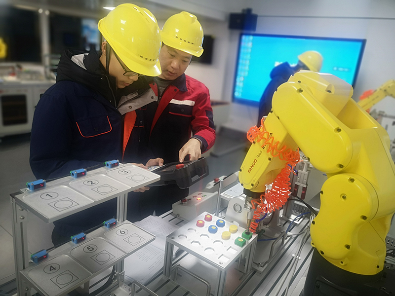 2020、2021兩年暑假,支部黨員陳經(jīng)緯、陸暢都能冒著酷暑參加了工業(yè)機器人1+X證書師資、考評員培訓(xùn),他們克服了重重困難,在炎炎夏日里放棄了大量的休息時間,參加培訓(xùn)。俗話說“想給學(xué)生一杯水,老師要先有一桶水?!睘榱四芙毯脤W(xué)生,兩位老師自己先行辛苦鉆研,先期深入牢固地掌握各項技能。