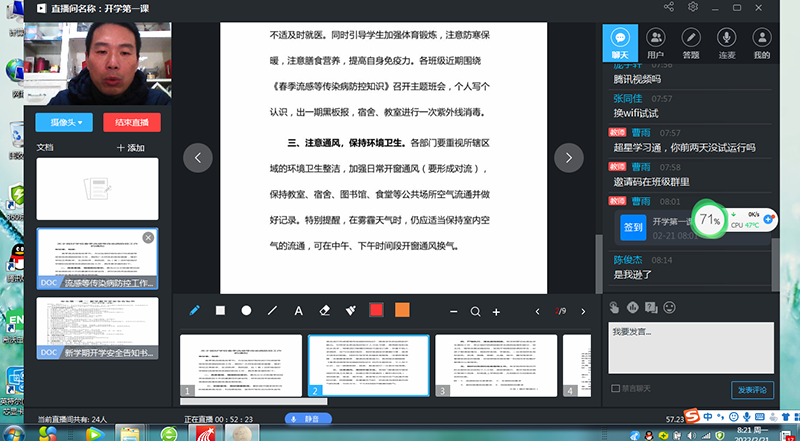 在本次活動(dòng)中,學(xué)院班主任老師及輔導(dǎo)員通過(guò)在線直播的方式開展開學(xué)第一課。