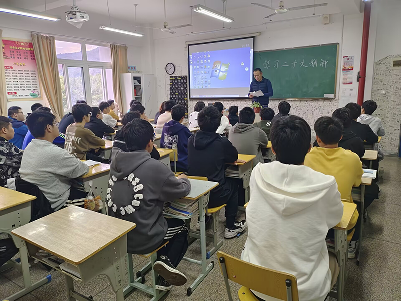 為全面學(xué)習(xí)貫徹習(xí)近平新時(shí)代中國(guó)特色社會(huì)主義思想,機(jī)電工程學(xué)院211321班于11月9號(hào)周三下午班會(huì)課,由班主任王訓(xùn)老師帶領(lǐng)全班學(xué)生深入學(xué)習(xí)黨的二十大精神。