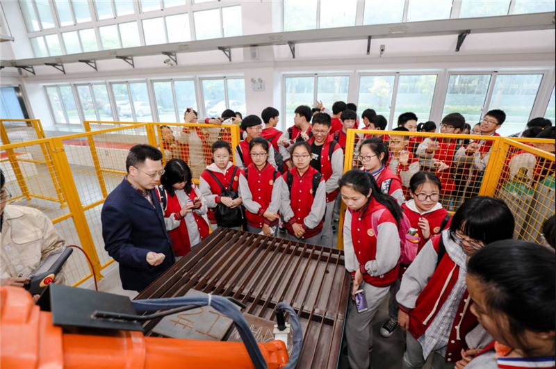 在體驗過程中,同學(xué)們顯示出濃厚興趣。在專業(yè)教師精彩詳細的講解下,對相關(guān)專業(yè)和職業(yè)有了深入的了解。部分學(xué)生還親自操作工業(yè)及機器人能夠自動噴漆噴釉等,自動行走做各種活動,讓同學(xué)們連連稱贊。