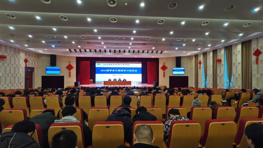 為進一步明確學生崗位實習意義及要求,強調學生崗位實習安全,明悉崗位實習安全注意事項,確保頂崗實習安全,2月24日下午,機電工程學院在學校大禮堂召開了2024屆畢業(yè)生頂崗實習動員大會。會議由副院長俞浩主持,機電工程學院全體領導、畢業(yè)班班主任、輔導員及全體2024屆畢業(yè)生參加了會議。