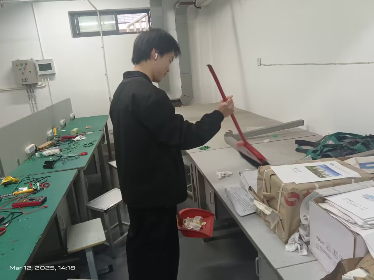活動(dòng)期間,同學(xué)們分工協(xié)作,手持掃帚、抹布等工具,對(duì)車間設(shè)備、地面、門窗及衛(wèi)生死角進(jìn)行全面清潔,大家互幫互助,整理工具臺(tái)、清運(yùn)垃圾,充分展現(xiàn)團(tuán)結(jié)奉獻(xiàn)精神。經(jīng)過兩小時(shí)勞動(dòng),車間煥然一新。