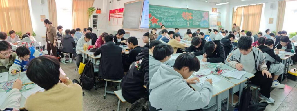 課堂開篇,吳玉琴老師以教室單開單控?zé)魹榍腥朦c(diǎn),通過實(shí)物演示,講解單控開關(guān)的結(jié)構(gòu)與功能,用“連接生活與物理”的方式降低認(rèn)知門檻,強(qiáng)調(diào)“正確接線”的重要性,提升學(xué)生的安全與規(guī)范意識。同時(shí),課程聚焦“雙控電路原理圖繪制與實(shí)際連接”教學(xué)重點(diǎn),延伸創(chuàng)新拓展,對接智能前沿。深入分析傳統(tǒng)電路與智能設(shè)備的兼容性、布線改造、通信協(xié)議匹配等智能升級關(guān)鍵問題,引導(dǎo)學(xué)生結(jié)合實(shí)際場景設(shè)計(jì)升級方案,培養(yǎng)創(chuàng)新思維與問題解決能力。