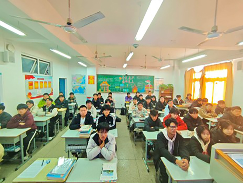 活動當(dāng)日,學(xué)院統(tǒng)籌安排,同學(xué)們坐姿端正、目光篤定,聚焦屏幕中“憲法晨讀”的莊嚴(yán)場景:從憲法條文的集體誦讀,到專家對“國家根本法”精神內(nèi)核的深度解讀,每一個環(huán)節(jié)都牽動著同學(xué)們的目光。不少班級跟隨直播節(jié)奏,齊聲跟讀憲法片段,朗朗書聲在教室回蕩,傳遞出對憲法的尊崇與敬畏。照片中,同學(xué)們專注的神情、整齊的隊列,生動詮釋了這場“沉浸式”學(xué)習(xí)的感染力。
