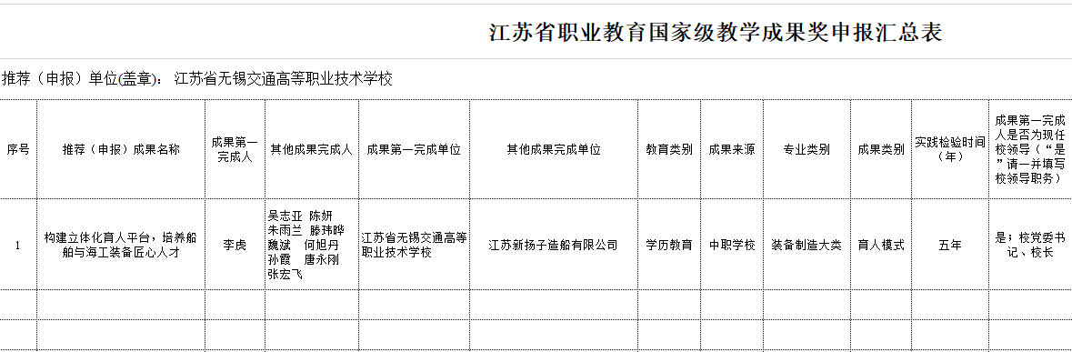 根據(jù)《江蘇省教育廳關(guān)于做好2022年職業(yè)教育國家級教學成果獎申報推薦工作的通知》(蘇教職函〔2022〕37號)精神,按照公開、公正、公平的原則,經(jīng)成果完成人申報、教務(wù)處審核,現(xiàn)將擬推薦項目予以公示。